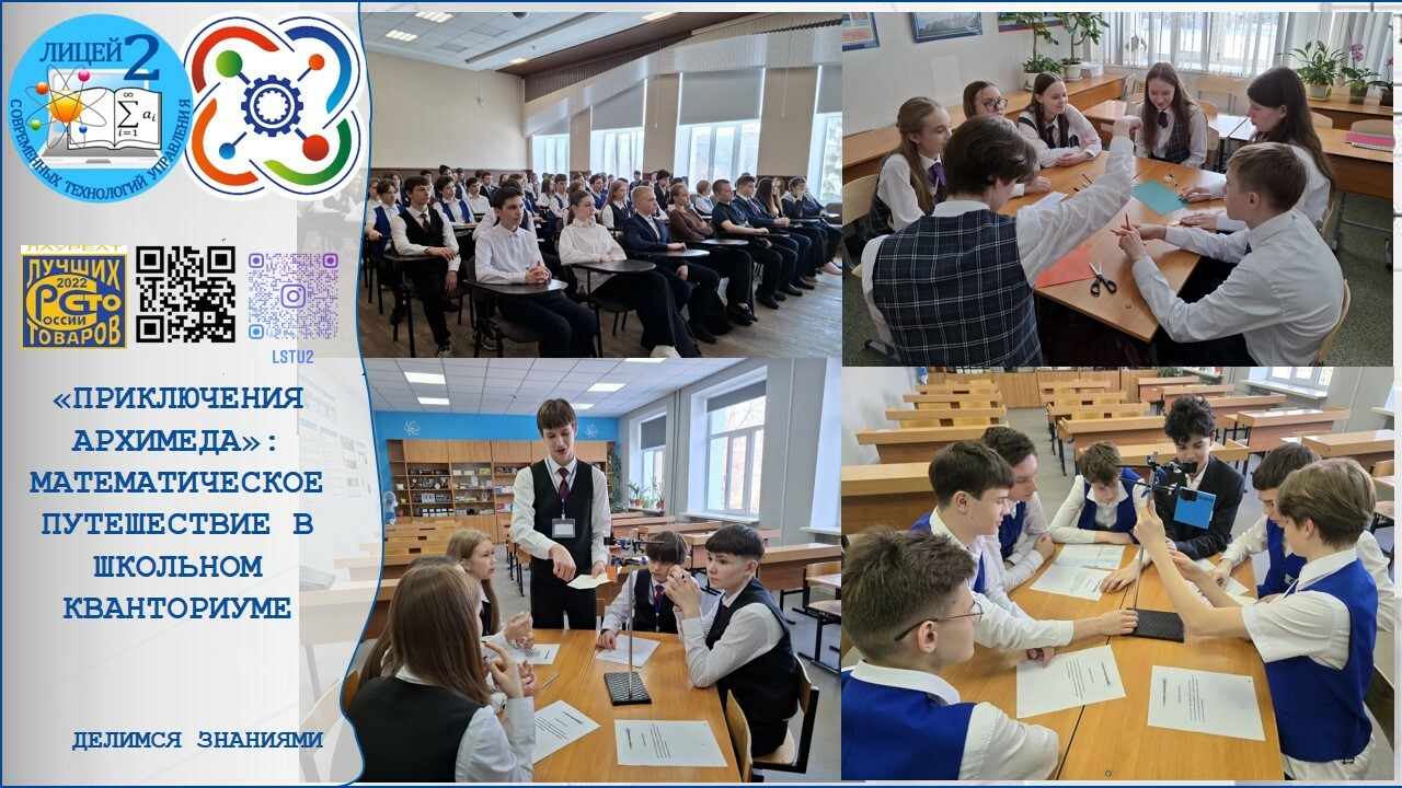 В МБОУ «Лицей современных технологий управления № 2» г. Пензы на базе Школьного Кванториума состоялся V городской открытый математический практико-ориентированный конкурс-игра «Приключения Архимеда». Мероприятие было организовано в рамках реализации Концепции математического образования в Российской Федерации и приурочено к Десятилетию науки и технологий.