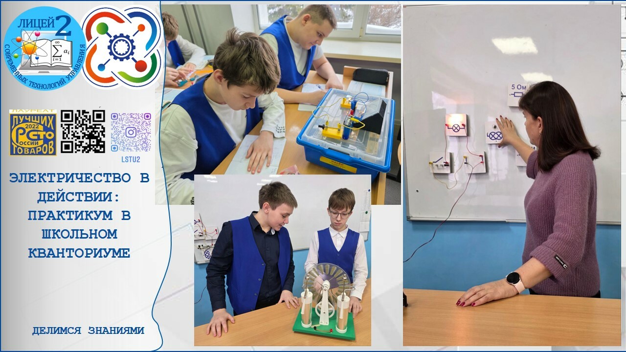 В Школьном Кванториуме МБОУ «Лицей современных технологий управления № 2» г. Пензы состоялось практическое занятие, посвящённое изучению основ электричества — одного из фундаментальных физических явлений, лежащих в основе работы современных технических устройств.