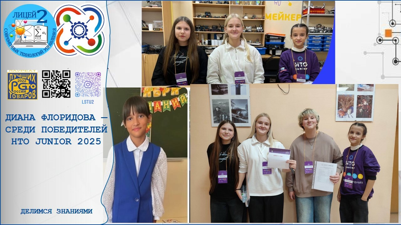 7 учащихся из Пензенской области стали победителями Национальной технологической олимпиады Junior — одного из ключевых проектов Президентской платформы «Россия – страна возможностей». Среди них — воспитанница Школьного Кванториума МБОУ «Лицей современных технологий управления № 2» г. Пензы, Флоридова Диана. Для образовательного сообщества региона это значимое достижение, подтверждающее высокий уровень подготовки школьников.