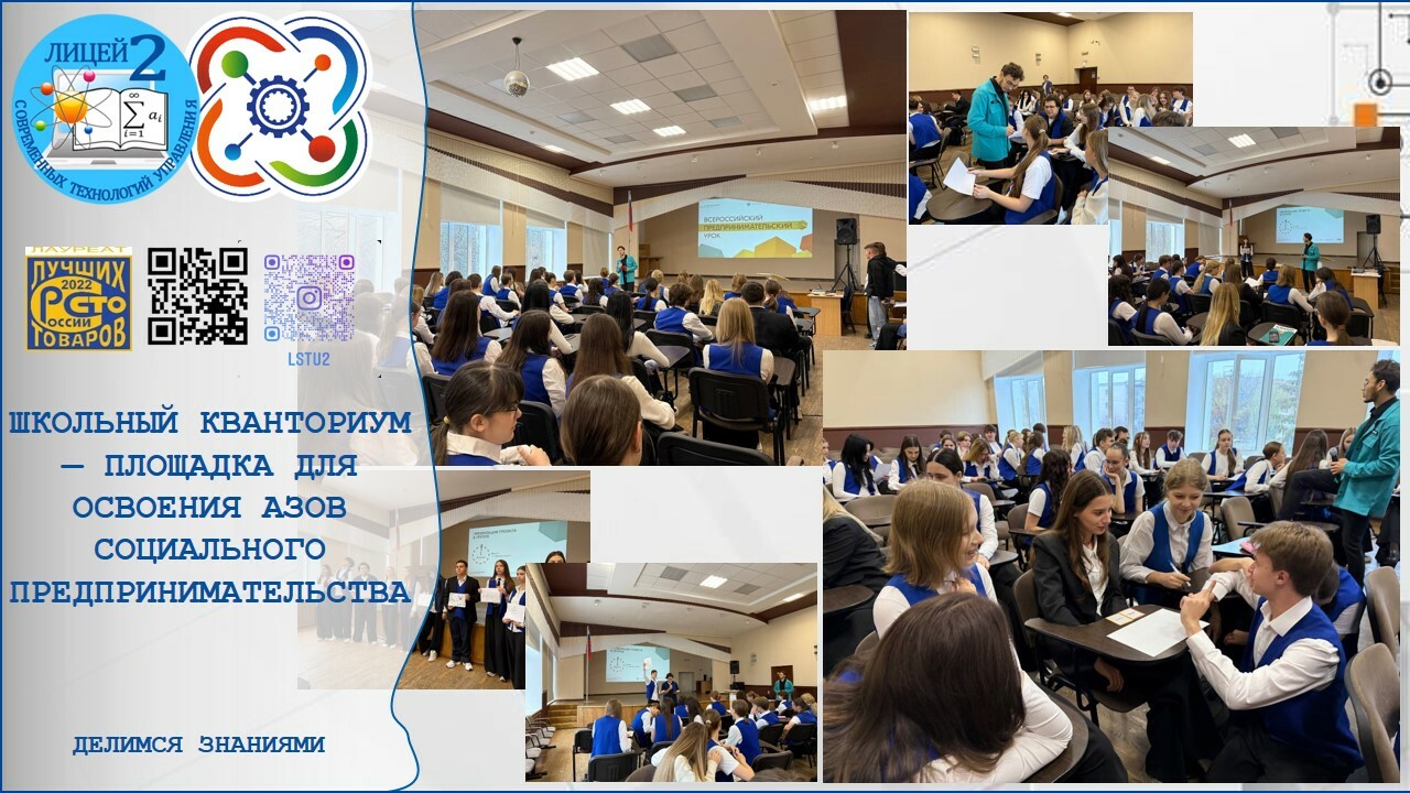 На базе Школьного Кванториума лицея № 2 г. Пензы состоялся Всероссийский предпринимательский урок, организованный проектами «Росмолодёжь. Предпринимай» и «Я в деле». Эта всероссийская инициатива направлена на раннее погружение школьников в мир предпринимательства, развитие у них проектного мышления и понимания того, как социальные инициативы могут менять жизнь окружающих.
