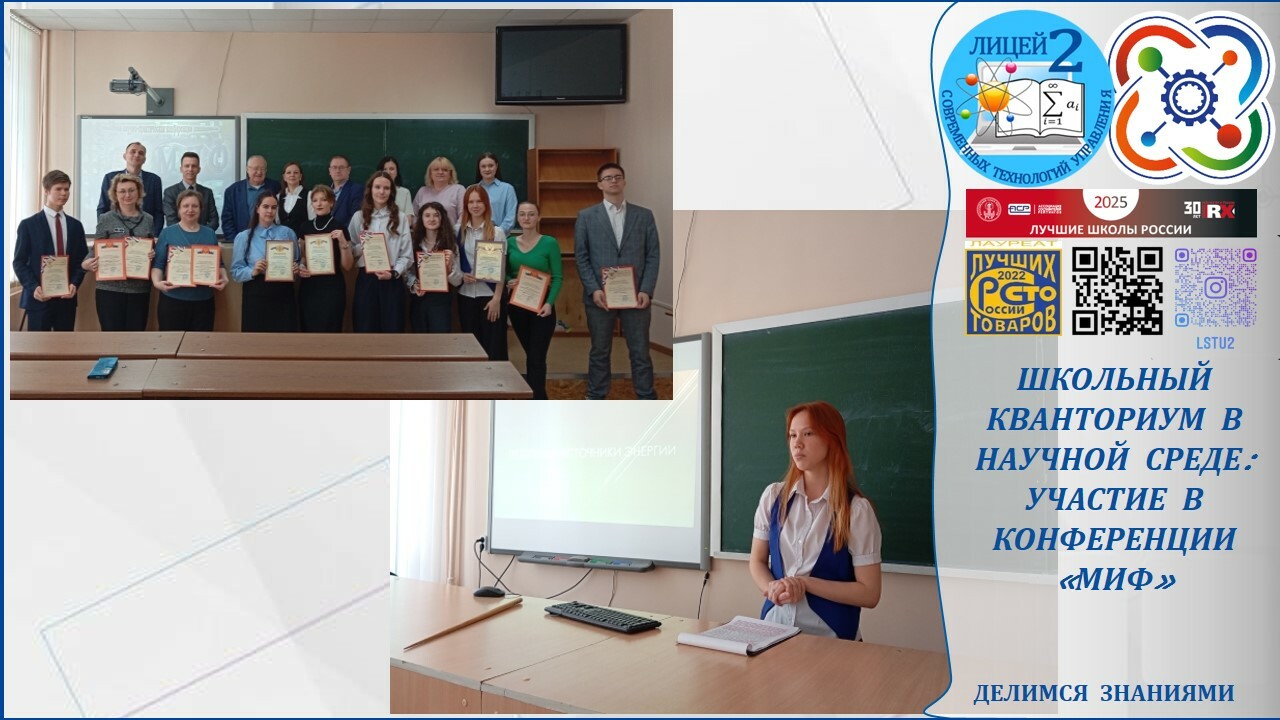 Конференция традиционно направлена на развитие исследовательского потенциала школьников, поддержку одарённых учащихся и формирование у них навыков научного анализа и публичной защиты проектов.Активное участие в конференции приняла воспитанница Школьного Кванториума МБОУ «Лицей современных технологий управления № 2» г. Пензы Оськина Ольга, ученица 10 «В» класса. Образовательная среда Кванториума позволяет учащимся развивать проектные и инженерные компетенции, что способствует успешному участию в научных мероприятиях.
